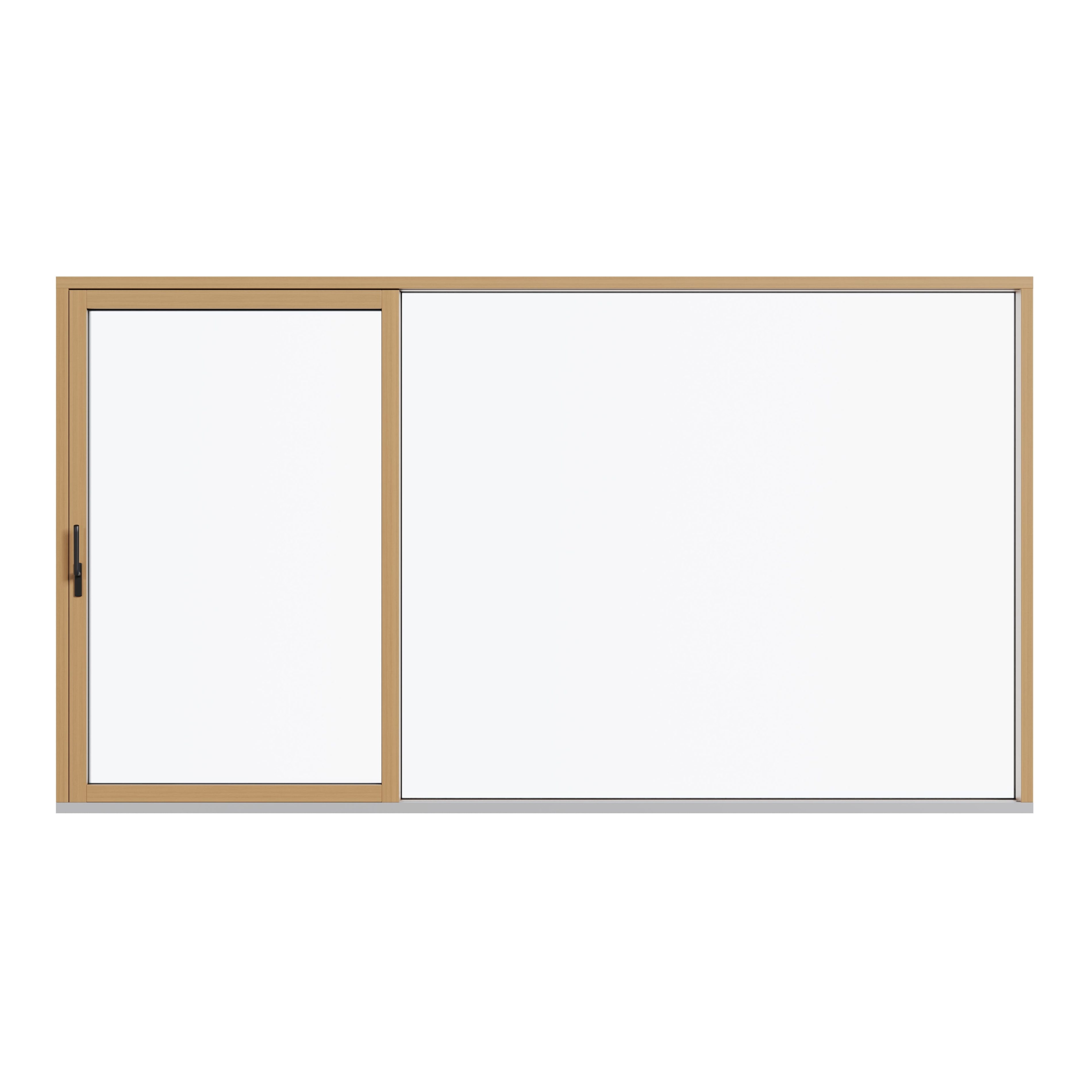 Slimmer, bead-free frames make this our sleekest timber/aluminium option. All fixed parts are built into the outer frame for a fully frameless look - just a perfect timber frame of sliding glass flanked by frameless fixed parts.