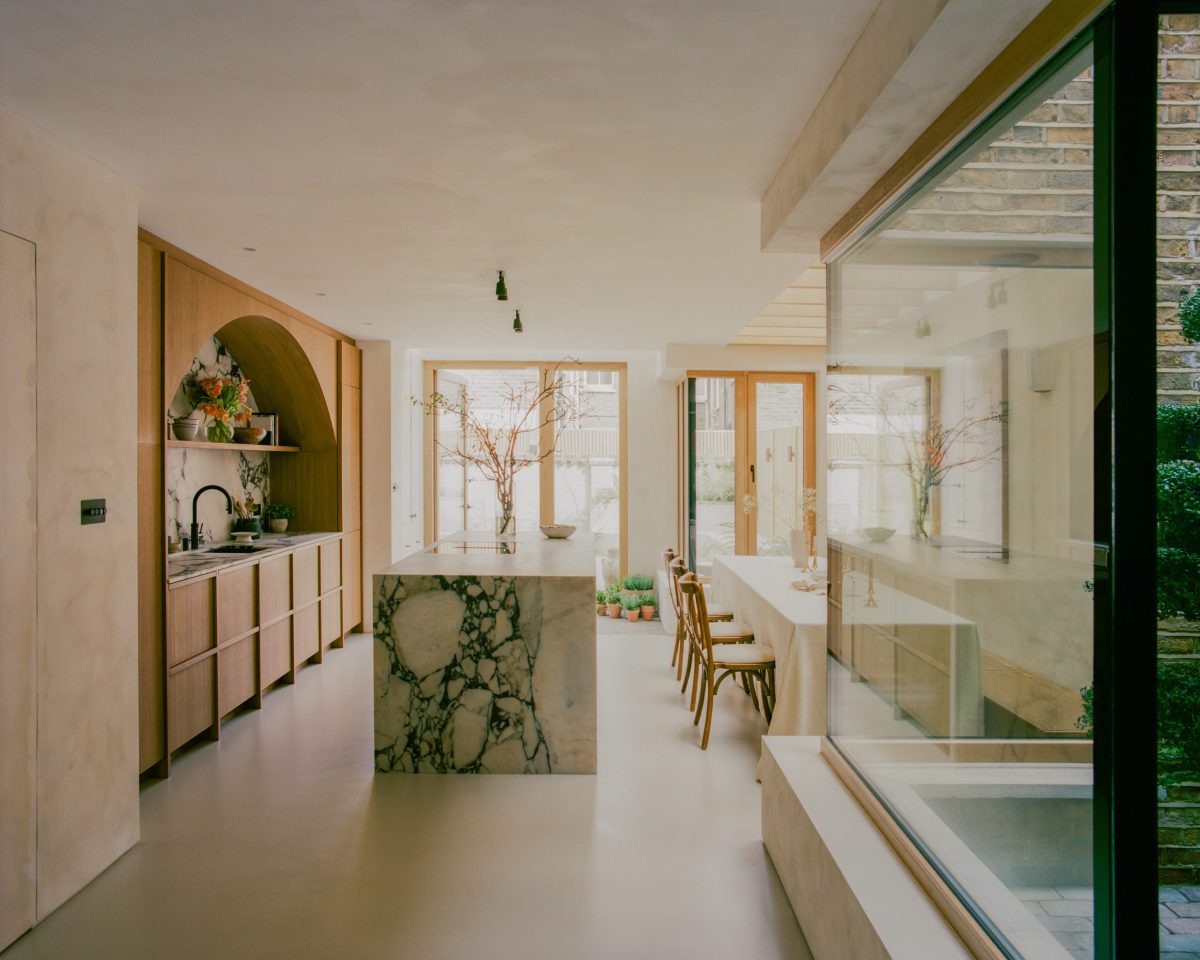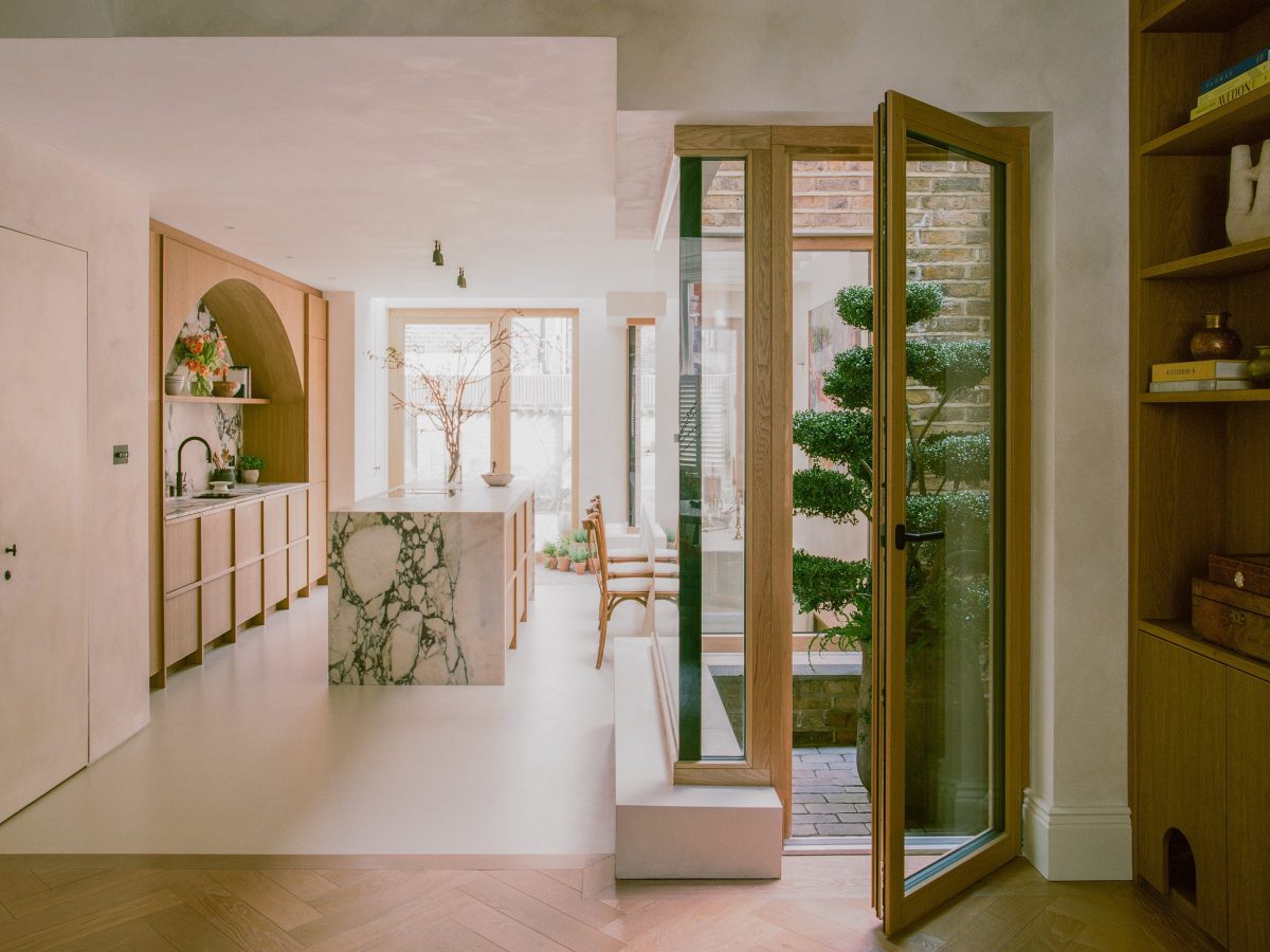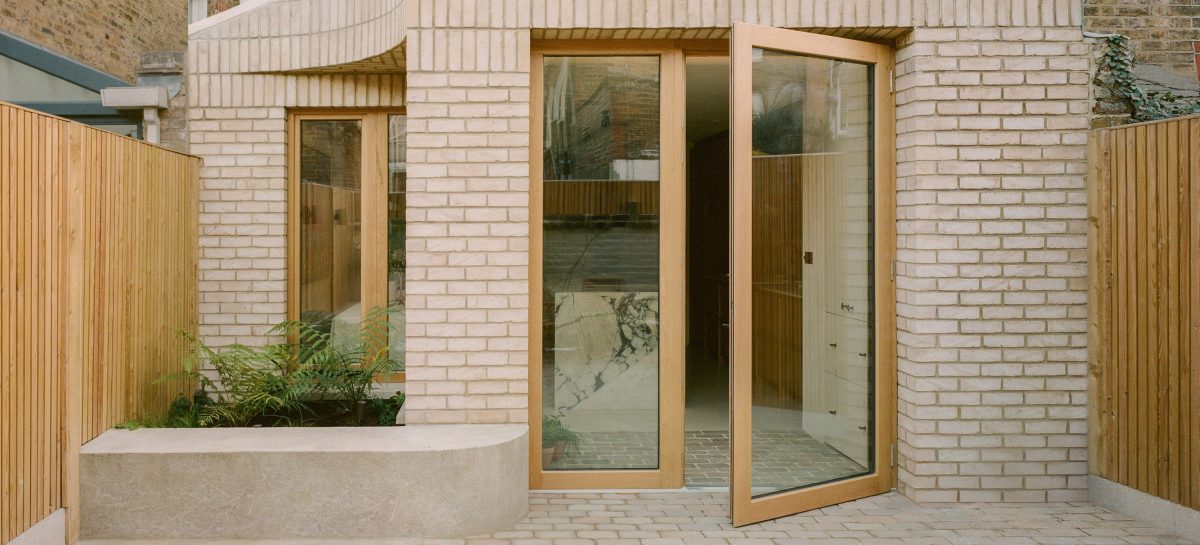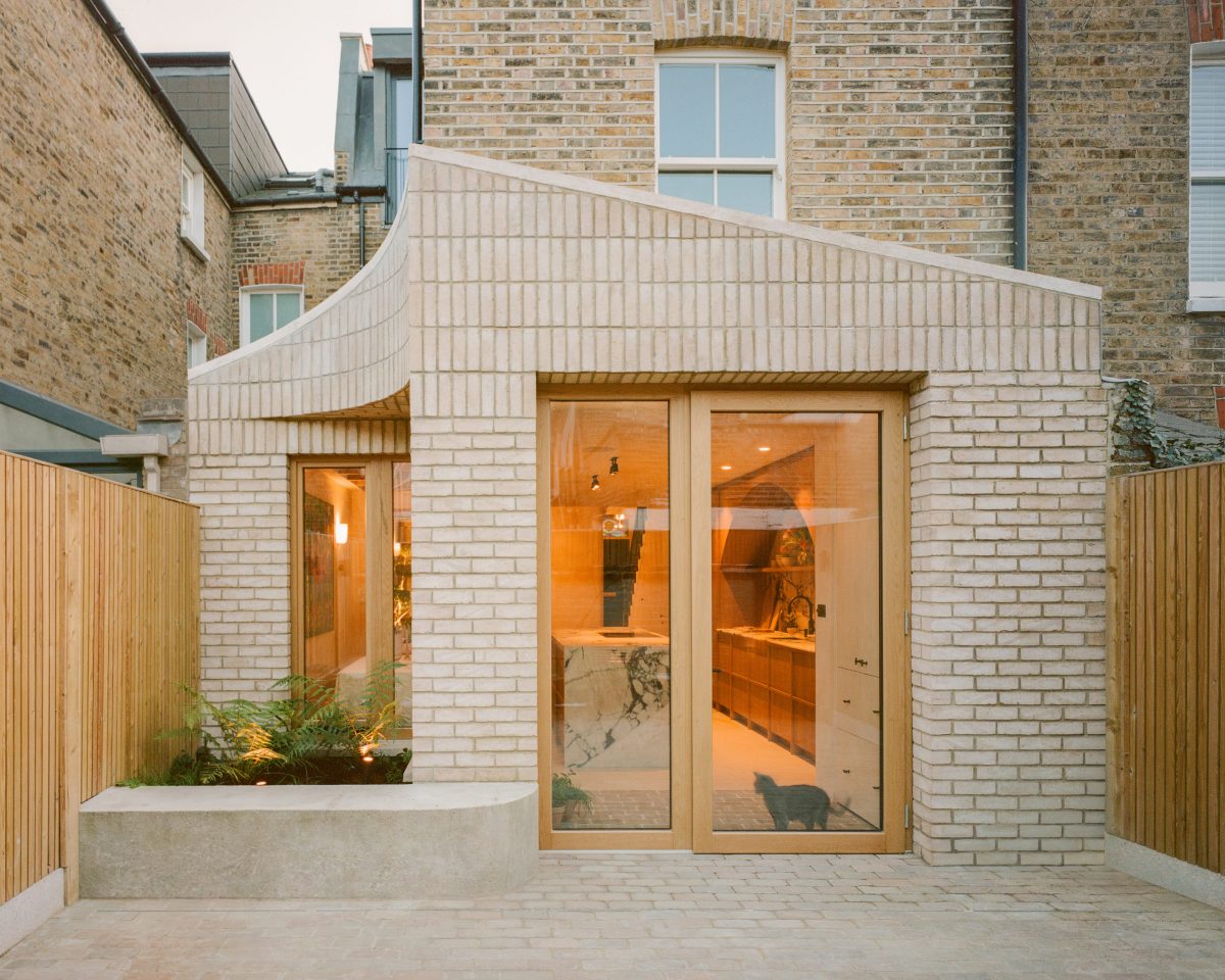 A refined London extension defined by sculptural brickwork and warm oak glazing.