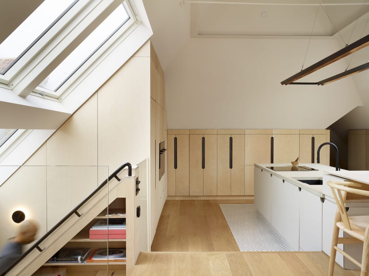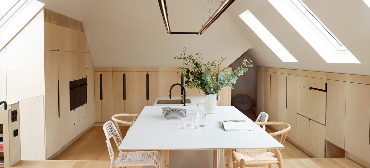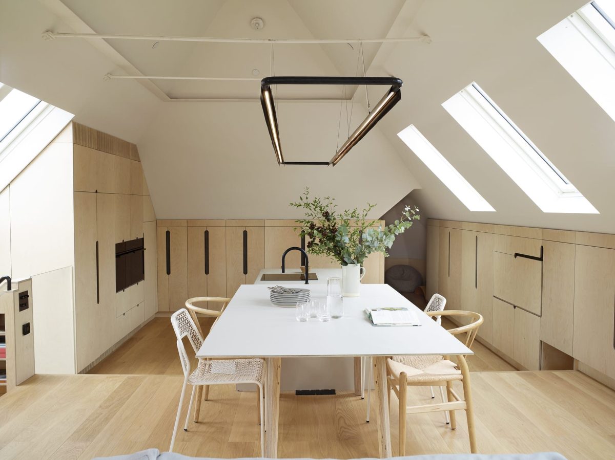Loft House is a striking transformation of a North London flat by Variant Office Architects. The project reimagines a traditional top-floor apartment in Kilburn, expanding into the loft space to create a light-filled, open-plan living area that more than doubles the size of the original home.