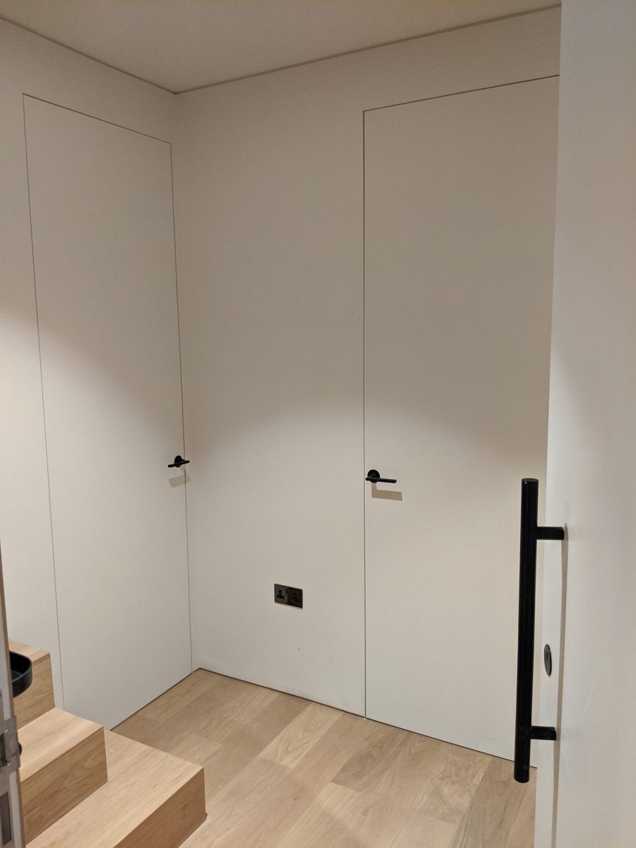 Inside, Invisio frameless doors were developed to appear completely flush with the surrounding walls, creating a beautifully minimal effect where the architecture reads as a single continuous surface. The result is a sequence of rooms defined by clean geometry and quiet material integrity, where even the smallest detail feels precisely considered.