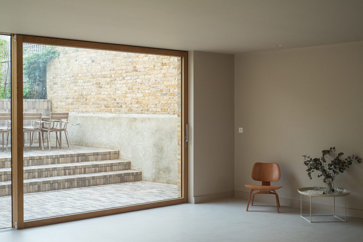 The result is an architectural study in balance — warm oak, London brick, and muted tones working together to form a tranquil modern interior within a period shell. The vast sliding door captures the project’s essence: a moment of movement made still, where craftsmanship and light meet in quiet perfection.