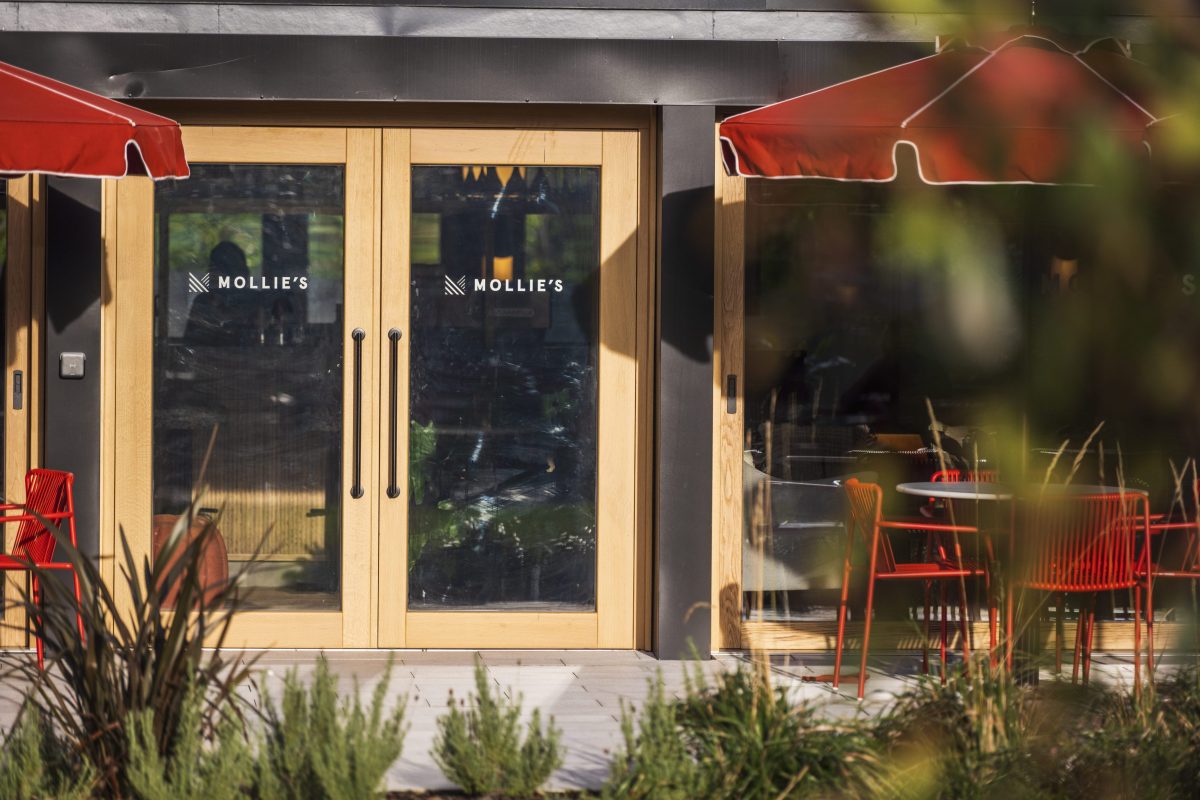 Elsewhere, automated entrance doors and large sliding pocket doors enhance the sense of openness, connecting to a calm courtyard space while preserving the building’s acoustic integrity.